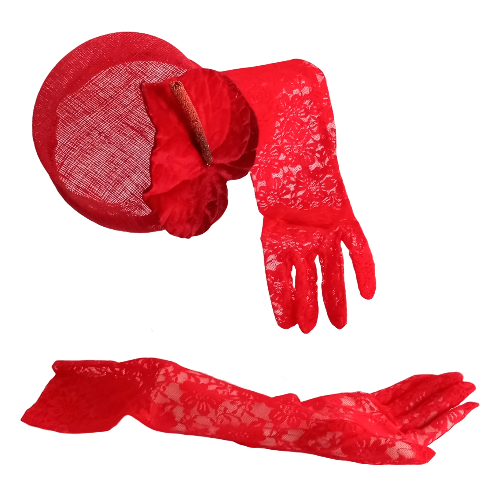 El Casquete Rojo Hoja Grande y Guante Largo Encaje es un accesorio sofisticado que combina elegancia y creatividad con un diseño distintivo. Con materiales de calidad y detalles en encaje, aporta versatilidad y estilo único para bodas, galas y eventos especiales.