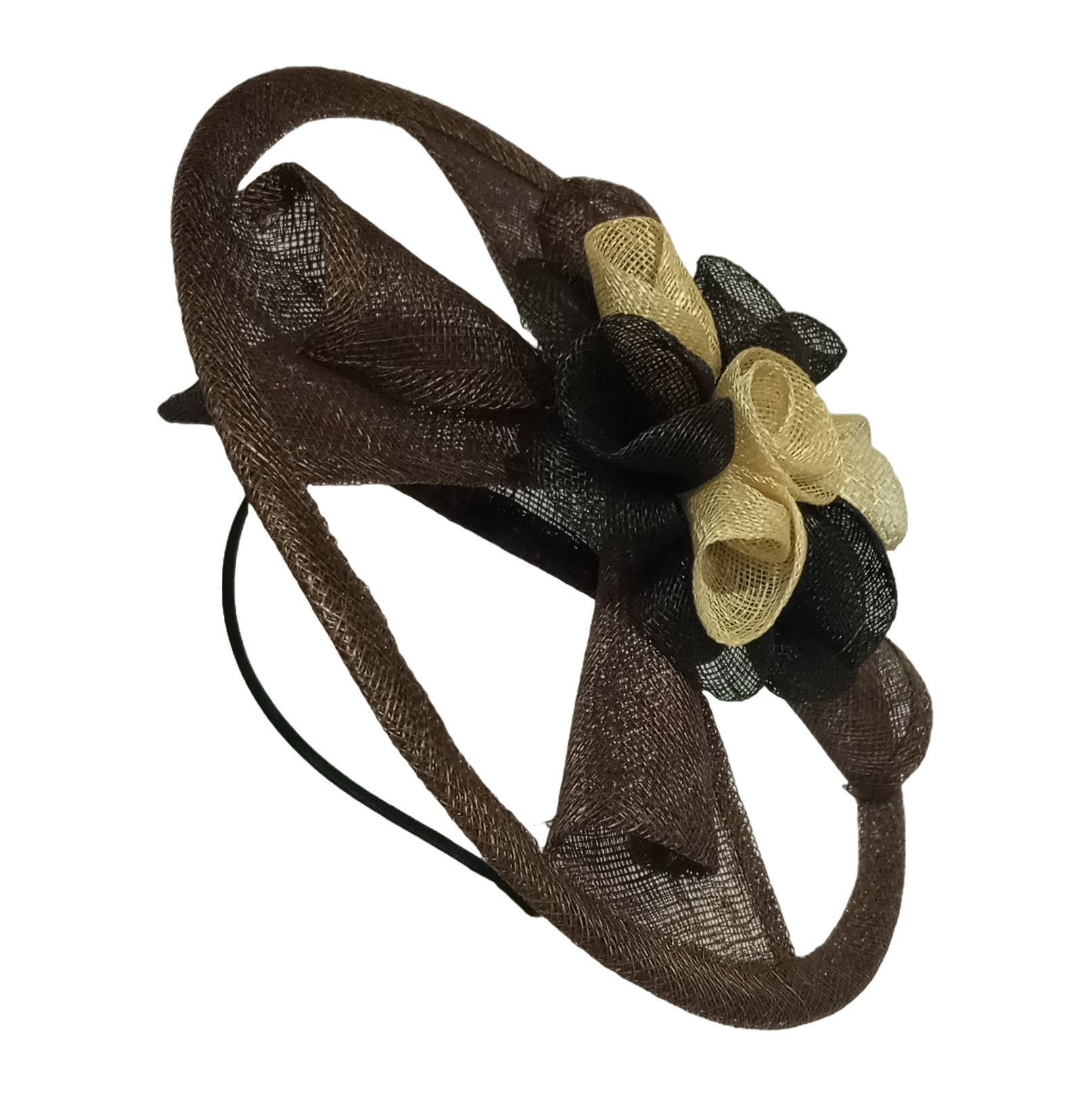 Tocado Marrón con Flor Beige